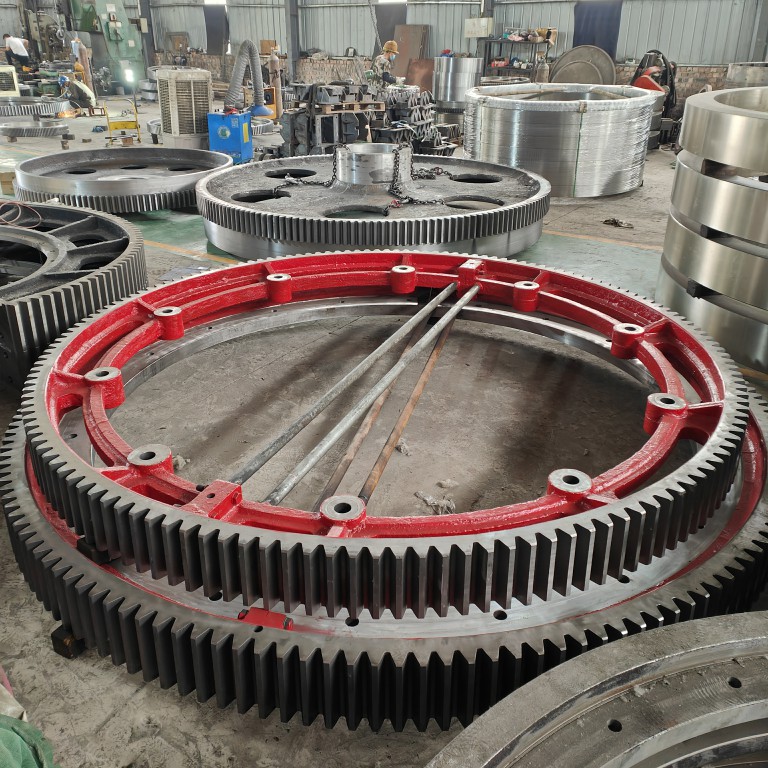 烘干機輪帶、烘干機托輪、烘干機擋輪、烘干機大齒圈是回轉式滾筒烘干機的主要傳動部件,各自起到不同的作用:
